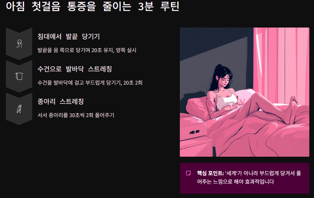 2단계: 아침 첫걸음 통증을 줄이는 ‘3분 루틴’을 만들었습니다